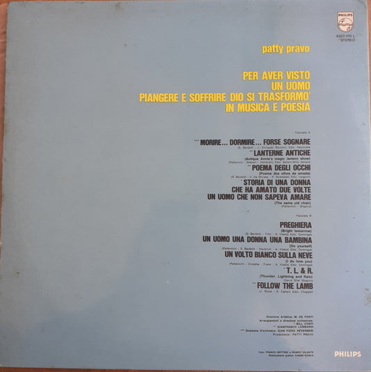 Patty Pravo - Per Aver Visto Un Uomo Piangere E Soffrire Dio Si Trasformò In Musica E Poesia