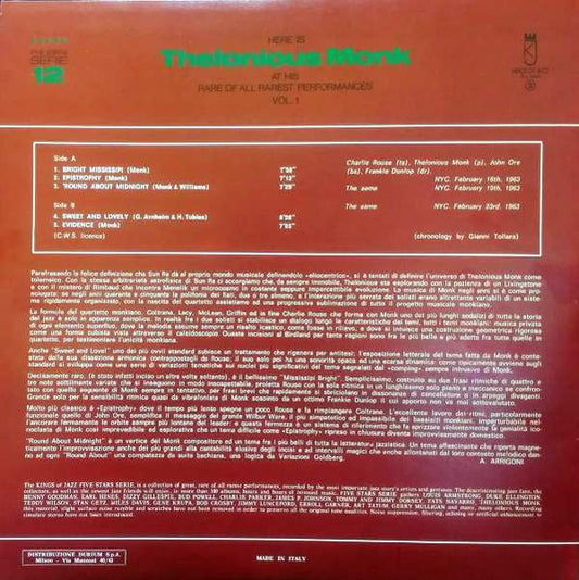 Thelonious Monk - Here Is Thelonious Monk At His Rare Of All Rarest Performances Vol. 1