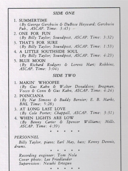 A1. Summertime A2. One For Fun A3. That's For Sure A4. A Little Southside Soul A5. Blue Moon B1. Makin' Whoopee B2. Poinciana B3. At Long Last Love B4. When Lights Are Low