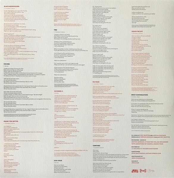 A1. Black Moon Rising A2. Colors A3. Know You Better A4. Fire A5. OCT 33 B1. Stay Gold B2. Old Man B3. Confines B4. Touch The Sky B5. Sweet Conversations