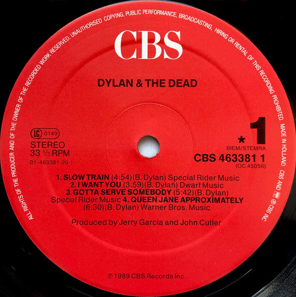 A1. Slow Train A2. I Want You A3. Gotta Serve Somebody A4. Queen Jane Approximately B1. Joey B2. All Along The Watchtower B3. Knockin' On Heaven's Door