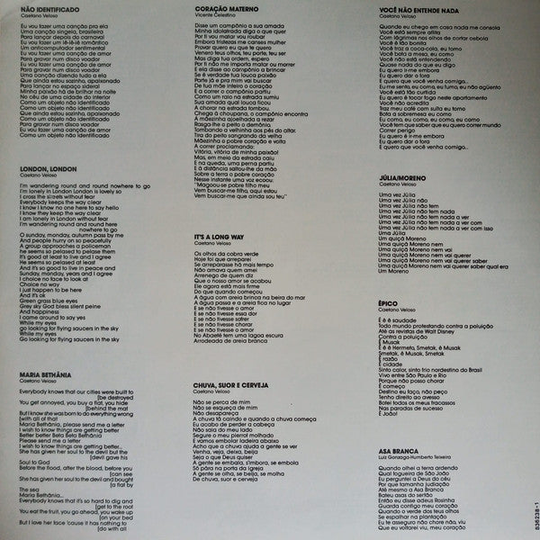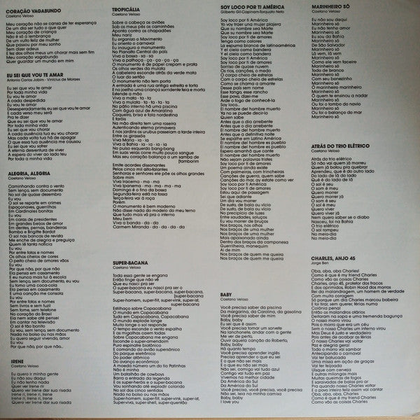 A1. Coração Vagabundo A2. Eu Sei Que Vou Te Amar A3. Alegria, Alegria A4. Tropicália A5. Super-Bacana A6. Soy Loco Por Ti, América A7. Ambiente De Festival - (É Proibido Proibir) B1. Baby B2. Irene B3. Marinheiro Só B4. Atrás Do Trio Elétrico B5. Charles, Anjo 45 B6. Não Identificado C1. London, London C2. Maria Bethânia C3. Coração Materno C4. It's A Long Way D1. Chuva, Suor E Cerveja (Rain, Sweat And Beer) D2. Você Não Entende Nada D3. Júlia/Moreno D4. Épico D5. Asa Branca