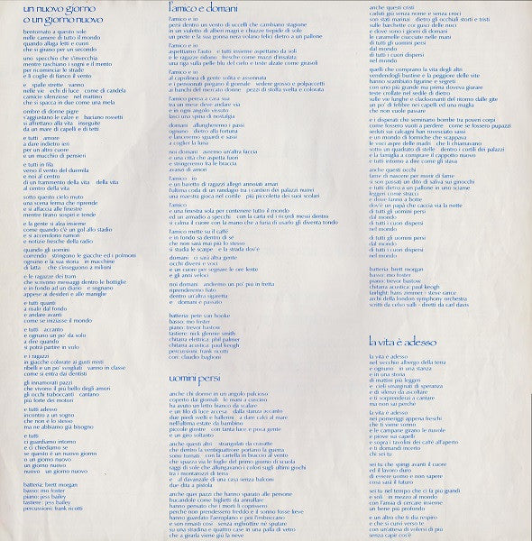 A1. Un Nuovo Giorno O Un Giorno Nuovo A2. L'Amico E Domani A3. Uomini Persi A4. La Vita È Adesso A5. Tutto Il Calcio Minuto Per Minuto B1. Andiamo A Casa B2. Amori In Corso B3. E Adesso La Pubblicità B4. Un Treno Per Dove B5. Notte Di Note, Note Di Notte