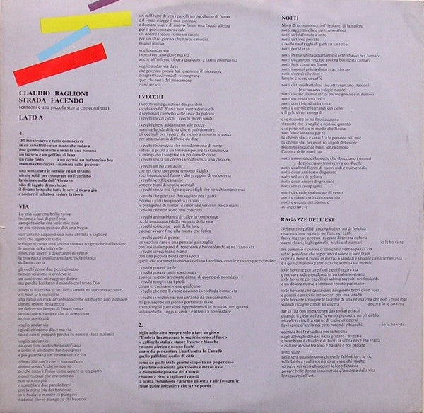 A1. 1 A2. Via A3. I Vecchi A4. 2 A5. Notti A6. Ragazze Dell'Est B1. Strada Facendo B2. 3 B3. Fotografie B4. Ora Che Ho Te B5. 4 B6. Buona Fortuna
