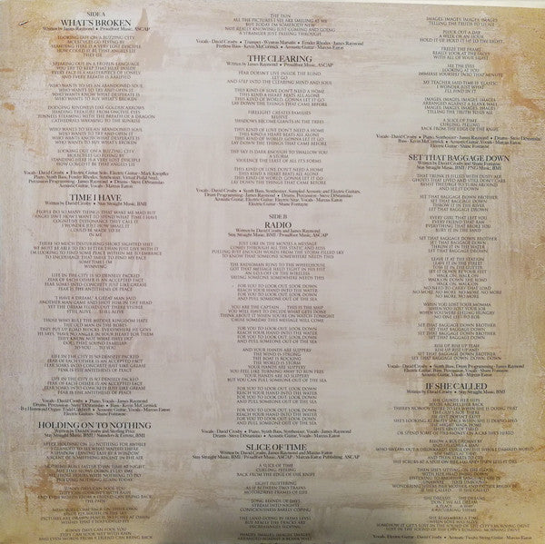 A1. What's Broken A2. Time I Have A3. Holding On To Nothing A4. The Clearing B1. Radio B2. Slice Of Time B3. Set That Baggage Down B4. If She Called C1. Dangerous Night C2. Morning Falling C3. Find A Heart D1. What's Broken D2. The Clearing