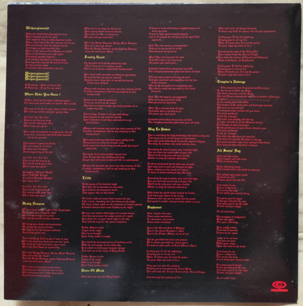 A1. Walpurgisnacht A2. Where Have You Gone? A3. Heavy Demons A4. Family Vault A5. Lilith B1. Peace Of Mind B2. Way To Power B3. Baphomet B4. Templar's Revenge B5. All Souls' Day