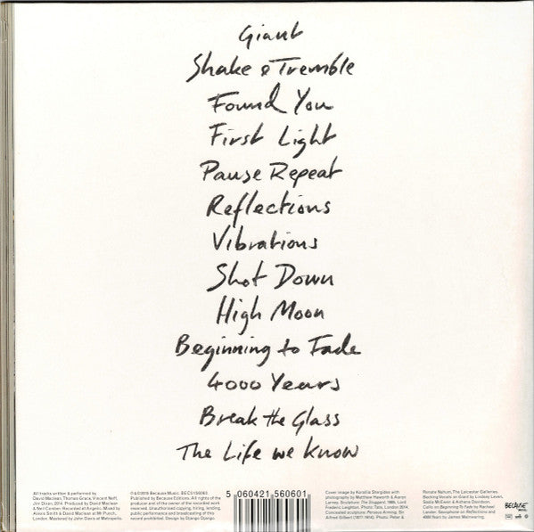 A1. Giant A2. Shake & Tremble A3. Found You B1. First Light B2. Pause Repeat B3. Reflections B4. Vibrations C1. Shot Down C2. High Moon C3. Beginning To Fade D1. 4000 Years D2. Break The Glass D3. The Life We Know CD-1. Giant CD-2. Shake & Tremble CD-3. Found You CD-4. First Light CD-5. Pause Repeat CD-6. Reflections CD-7. Vibrations CD-8. Shot Down CD-9. High Moon CD-10. Beginning To Fade CD-11. 4000 Years CD-12. Break The Glass CD-13. The Life We Know