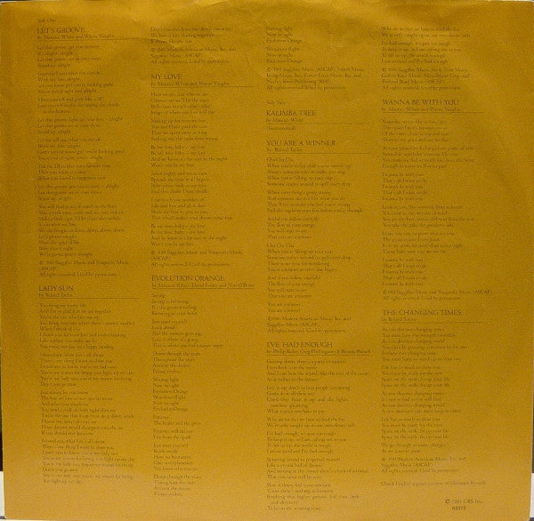 A1. Let's Groove A2. Lady Sun A3. My Love A4. Evolution Orange B1. Kalimba Tree B2. You Are A Winner B3. I've Had Enough B4. Wanna Be With You B5. The Changing Times