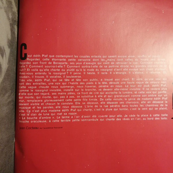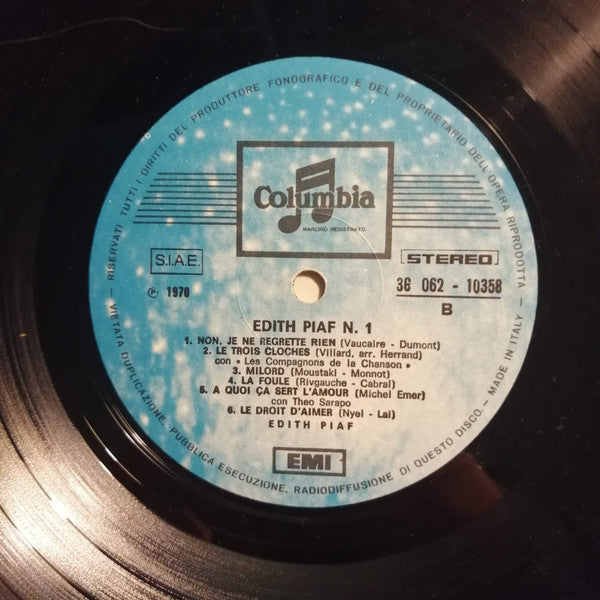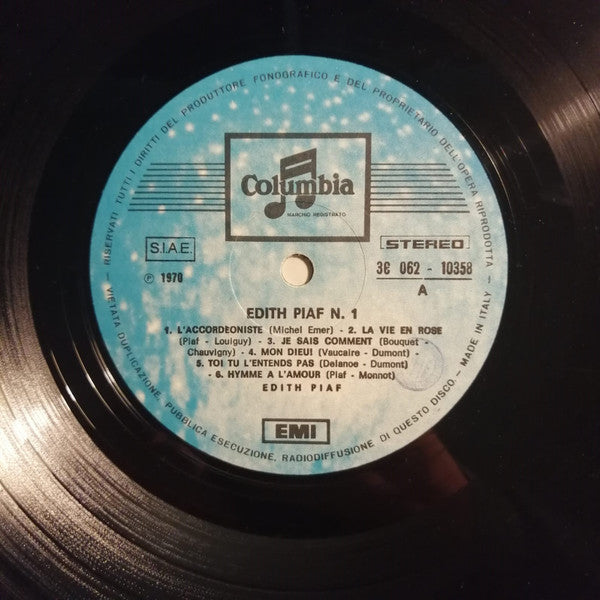 A1. L'Accordéoniste A2. La Vie En Rose A3. Je Sais Comment A4. Mon Dieu ! A5. Toi Tu L'entends Pas A6. Hymne à L'amour B1. Non, Je Ne Regrette Rien B2. Le Trois Cloches B3. Milord B4. La Foule B5. A Quoi ça Sert L'amour B6. Le Droit D'Aimer