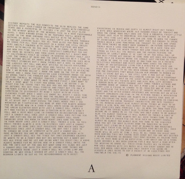 - Disco: Lucido e senza difetti visibili; privo di click e pop durante la riproduzione. Mantiene la condizione NM anche dopo diversi ascolti con adeguata attrezzatura e maneggiamento.