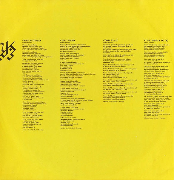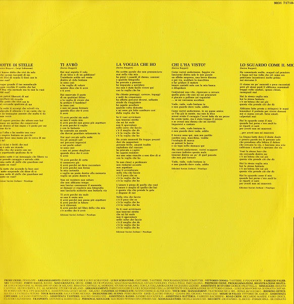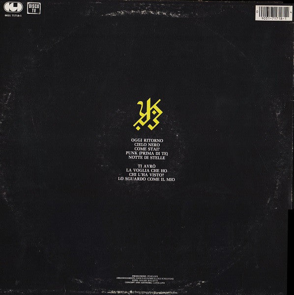 A1. Oggi Ritorno A2. Cielo Nero A3. Come Stai? A4. Punk (Prima Di Te) A5. Notte Di Stelle B1. Ti Avrò B2. La Voglia Che Ho B3. Chi L'Ha Visto? B4. Lo Sguardo Come Il Mio