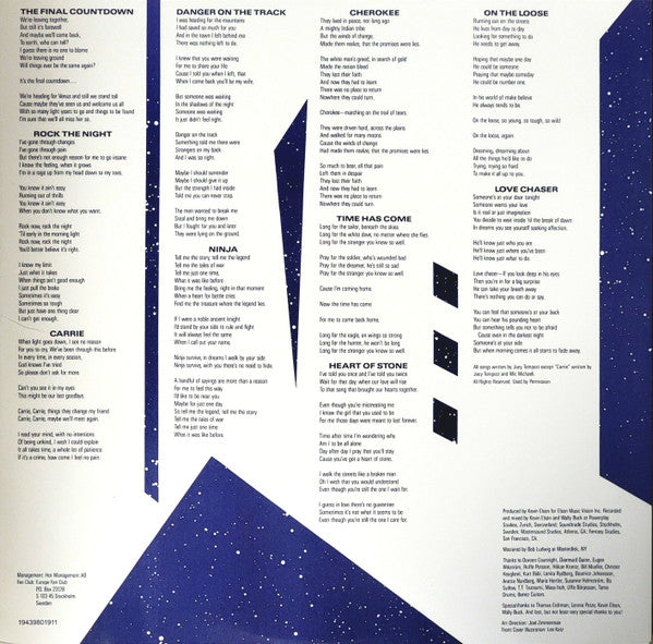 A1. The Final Countdown A2. Rock The Night A3. Carrie A4. Danger On The Track A5. Ninja B1. Cherokee B2. Time Has Come B3. Heart Of Stone B4. On The Loose B5. Love Chaser