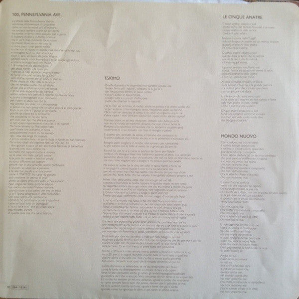 - Copertina: Ring wear, rotture, strappi evidenti o scritte. Angoli piegati o danneggiati.