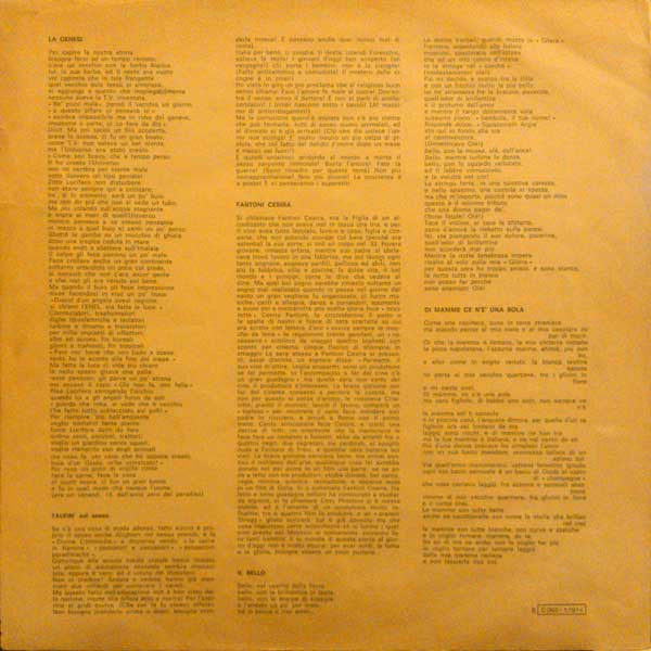 A1. Il Bello A2. Di Mamme Ce N'è Una Sola A3. La Genesi B1. Fantoni Cesira B2. Talkin' Sul Sesso B3. La Fiera Di San Lazzaro