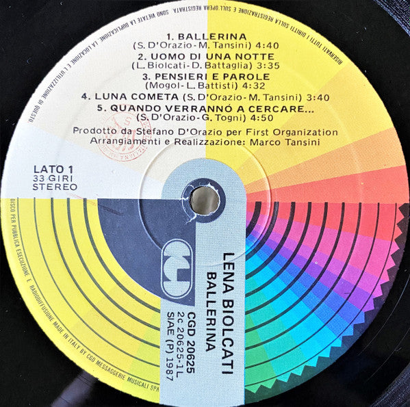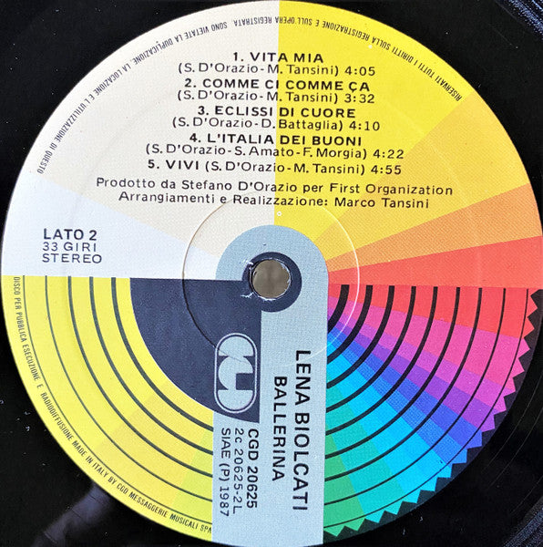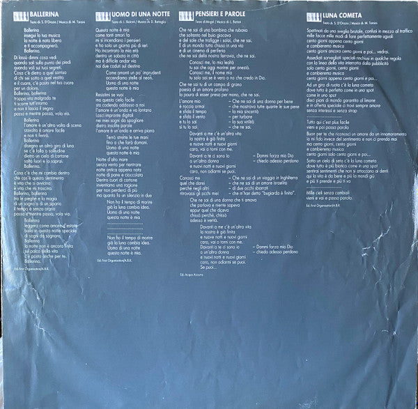 A1. Ballerina A2. Uomo Di Una Notte A3. Pensieri E Parole A4. Luna Cometa A5. Quando Verranno A Cercare... B1. Vita Mia B2. Comme Ci, Comme Ca B3. Eclissi Di Cuore B4. L'Italia Dei Buoni B5. Vivi
