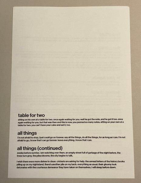 - Disco: Lucido e senza difetti visibili; privo di click e pop durante la riproduzione. Mantiene la condizione NM anche dopo diversi ascolti con adeguata attrezzatura e maneggiamento.