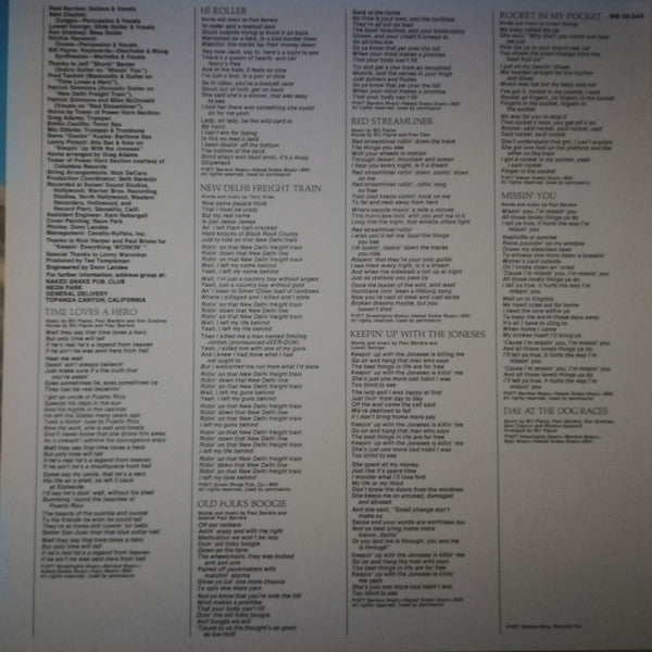 A1. Hi Roller A2. Time Loves A Hero A3. Rocket In My Pocket A4. Day At The Dog Races B1. Old Folks Boogie B2. Red Streamliner B3. New Delhi Freight Train B4. Keepin' Up With The Joneses B5. Missin' You