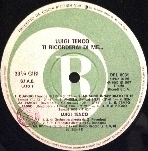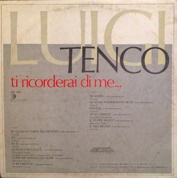 A1. Quando A2. Mi Sono Innamorato Di Te A3. Angela A4. Senza Parole A5. Il Tempo Passò A6. Il Mio Regno B1. In Qualche Parte Del Mondo B2. Isy B3. Io Sì B4. Quello Che Conta B5. Come Mi Vedono Gli Altri B6. Ti Ricorderai