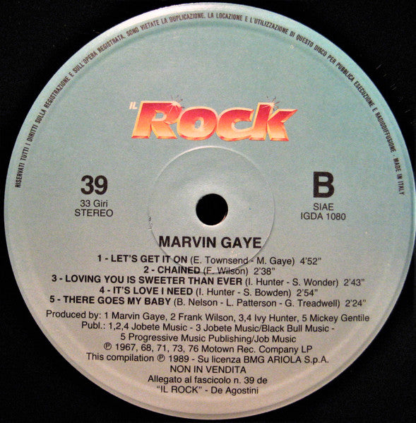 A1. What's Going On A2. Wholy Holy A3. Inner City Blues (Make Me Wanna Holler) A4. What's Happening Brother B1. Let's Get It On B2. Chained B3. Loving You Is Sweeter Than Ever B4. It's Love I Need B5. There Goes My Baby