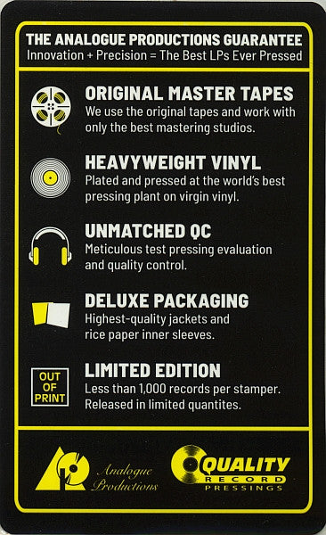- Disco: Lucido e senza difetti visibili; privo di click e pop durante la riproduzione. Mantiene la condizione NM anche dopo diversi ascolti con adeguata attrezzatura e maneggiamento.