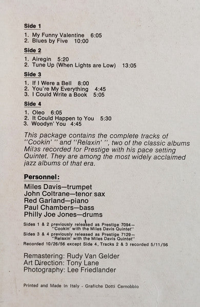 A1. If I Were A Bell A2. You're My Everything A3. I Could Write A Book B1. Oleo B2. It Could Happen To You B3. Woodyn' You C1. My Funny Valentine C2. Blues By Five D1. Airegin D2. Tune Up D3. When Lights Are Low