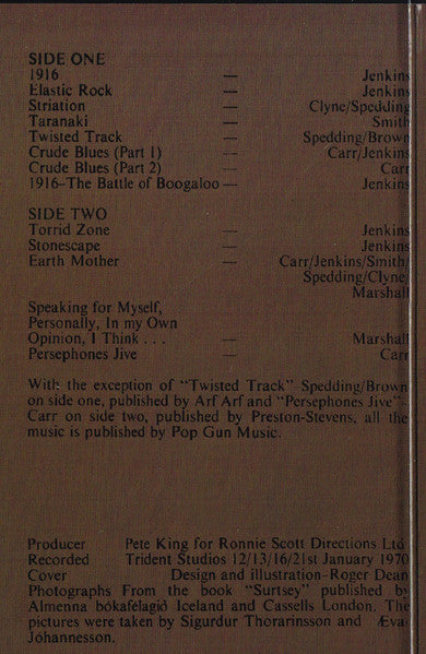 A1. 1916 A2. Elastic Rock A3. Striation A4. Taranaki A5. Twisted Track A6. Crude Blues (Part 1) A7. Crude Blues (Part 2) A8. 1916 - The Battle Of Boogaloo B1. Torrid Zone B2. Stonescape B3. Earth Mother B4. Speaking For Myself, Personally, In My Own Opinion, I Think... B5. Persephones Jive