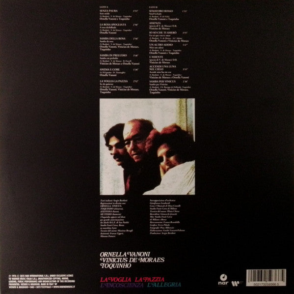 A1. Senza Paura (Sem Mêdo) A2. La Rosa Spogliata (A Rosa Desfolhada) A3. Samba Della Rosa (Samba Da Rosa) A4. Samba In Preludio (Samba Em Preludio) A5. Anema E Core A6. La Voglia La Pazzia (Se Ela Quisesse) B1. Semaforo Rosso (Sinal Fechado) B2. Assenza B3. Io So Che Ti Amerò (Eu Sei Que Vou Te Amar) B4. Un Altro Addio (Mais Um Adeus) B5. L'assente B6. Accendi Una Luna Nel Cielo (Acende Uma Lua No Ceu) B7. Samba Per Vinicius (Samba Pra Vinicius)