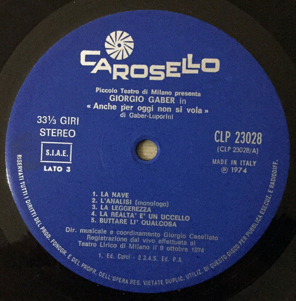 Piccolo Teatro Di Milano - Anche Per Oggi Non Si Vola