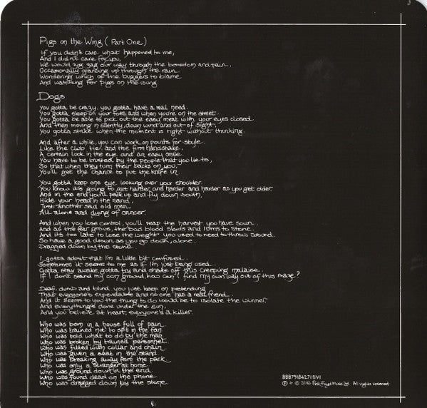 A1. Pigs On The Wing (Part One) A2. Dogs B1. Pigs (Three Different Ones) B2. Sheep B3. Pigs On The Wing (Part Two)