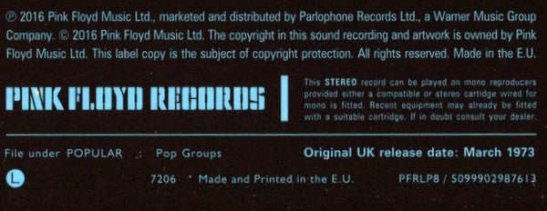 A1. Speak To Me A2. Breathe (In The Air) A3. On The Run A4. Time A5. The Great Gig In The Sky B1. Money B2. Us And Them B3. Any Colour You Like B4. Brain Damage B5. Eclipse