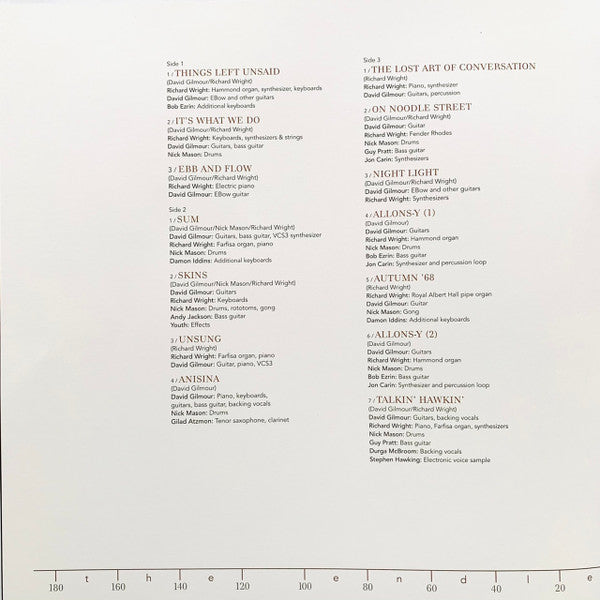 A1. Things Left Unsaid A2. It's What We Do A3. Ebb And Flow B1. Sum B2. Skins B3. Unsung B4. Anisina C1. The Lost Art Of Conversation C2. On Noodle Street C3. Night Light C4. Allons-y (1) C5. Autumn '68 C6. Allons-y (2) C7. Talkin' Hawkin' D1. Calling D2. Eyes To Pearls D3. Surfacing D4. Louder Than Words