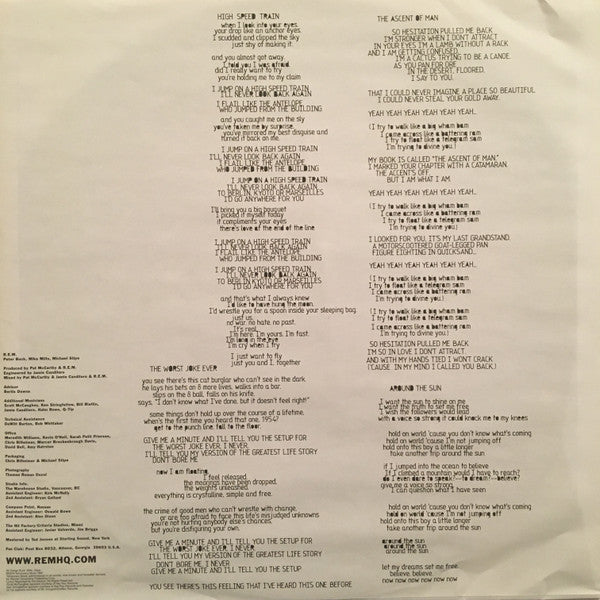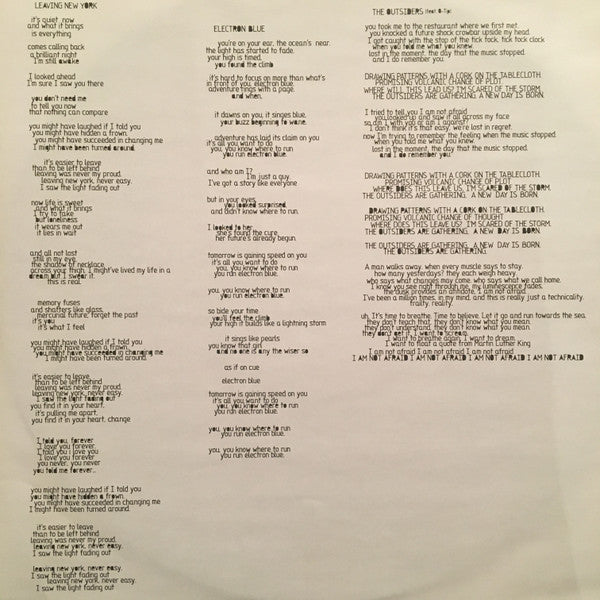 A1. Leaving New York A2. Electron Blue A3. The Outsiders B1. Make It All Okay B2. Final Straw B3. I Wanted To Be Wrong C1. Wanderlust C2. Boy In The Well C3. Aftermath D1. High Speed Train D2. The Worst Joke Ever D3. The Ascent Of Man D4. Around The Sun