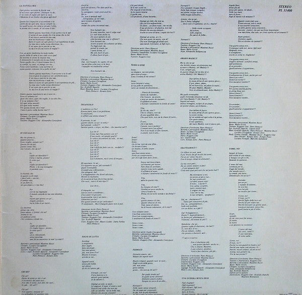 A1. La Favola Mia A2. Io Uguale Io A3. Chi Sei A4. Triangolo A5. Sogni Di Latta B1. Sesso O Esse B2. Fermati B3. Amaro Madely B4. Sbattiamoci B5. Una Guerra Senza Eroi B6. Uomo, No