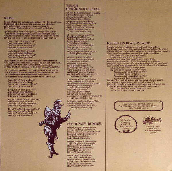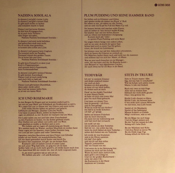A1. Kiosk A2. Welch Gewöhnlicher Tag A3. Dschungel Bummel A4. Ich Bin Ein Blatt Im Wind A5. Nadisna Sosolala B1. Plum Pudding Und Seine Hammer Band B2. Ich Und Rosemarie B3. Teddybär B4. Stets In Truure