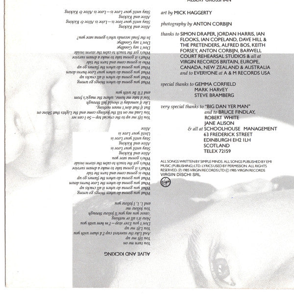 A1. Once Upon A Time A2. All The Things She Said A3. Ghost Dancing A4. Alive And Kicking B1. Oh Jungleland B2. I Wish You Were Here B3. Sanctify Yourself B4. Come A Long Way