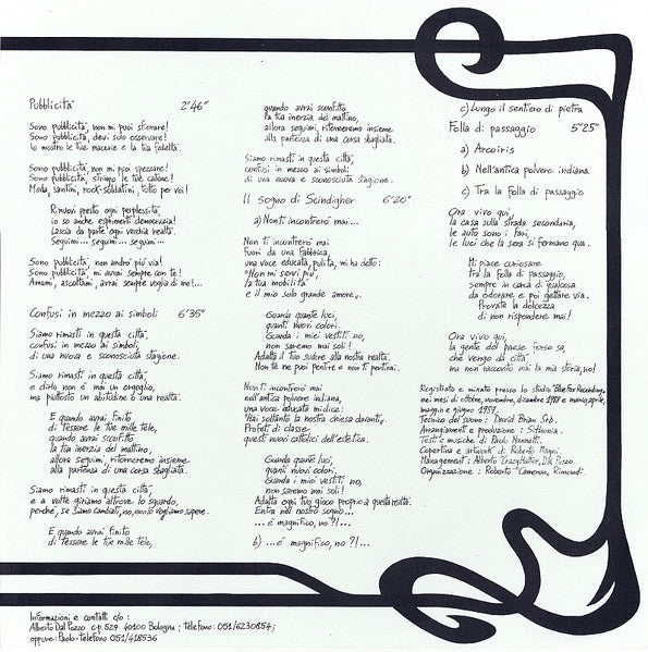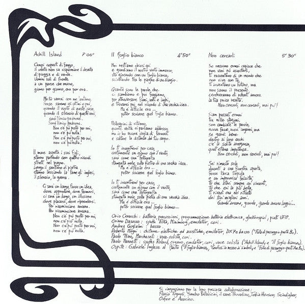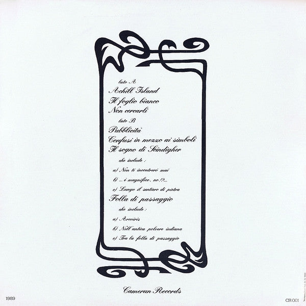 A1. Achill Island A2. Il Foglio Bianco A3. Non Cercarli B1. Pubblicita B2. Confusi In Mezzo Ai Simboli