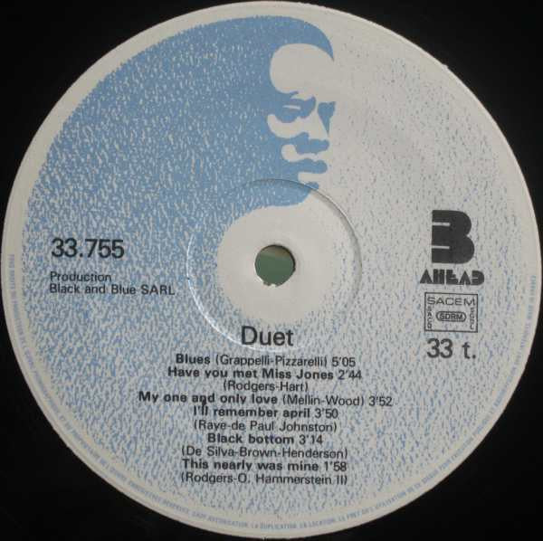 A1. There's A Small Hotel A2. Tangerine A3. My Blue Heaven A4. The Folks Who Live On The Hill A5. Alabamy Bound A6. Willow Weep For Me B1. Blues B2. Have You Met Miss Jones B3. My One And Only Love B4. I'll Remember April B5. Black Bottom B6. This Nearly Was Mine
