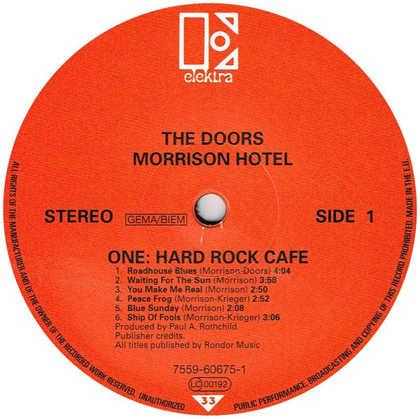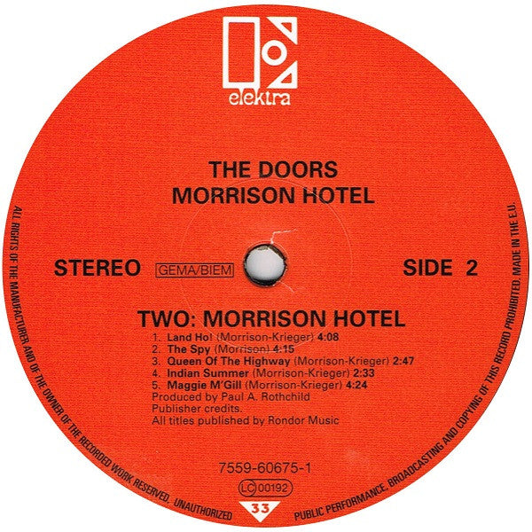 A1. Roadhouse Blues A2. Waiting For The Sun A3. You Make Me Real A4. Peace Frog A5. Blue Sunday A6. Ship Of Fools B1. Land Ho! B2. The Spy B3. Queen Of The Highway B4. Indian Summer B5. Maggie M'Gill