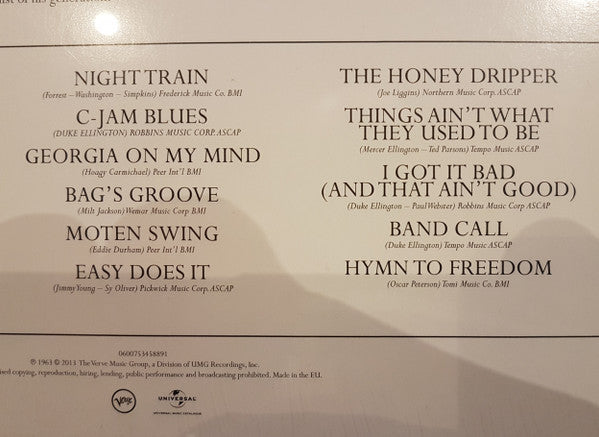 A1. Night Train A2. C-Jam Blues A3. Georgia On My Mind A4. Bags' Groove A5. Moten Swing A6. Easy Does It B1. The Honey Dripper B2. Things Ain't What They Used To Be B3. I Got It Bad (And That Ain't Good) B4. Band Call B5. Hymn To Freedom
