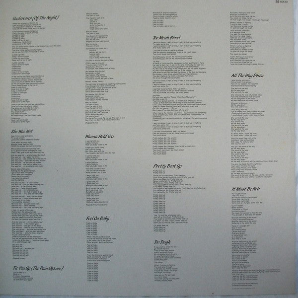 A1. Undercover Of The Night A2. She Was Hot A3. Tie You Up (The Pain Of Love) A4. Wanna Hold You A5. Feel On Baby B1. Too Much Blood B2. Pretty Beat Up B3. Too Tough B4. All The Way Down B5. It Must Be Hell