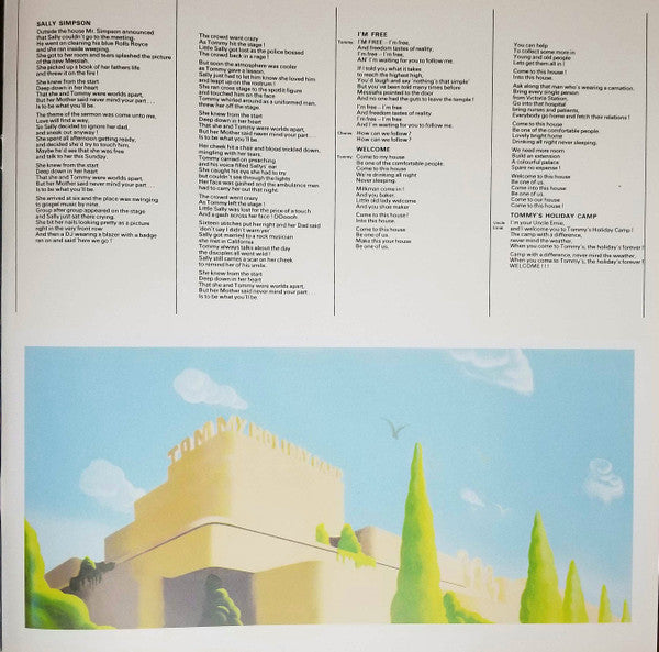 A1. Overture A2. It's A Boy A3. 1921 A4. Amazing Journey A5. Sparks A6. Eyesight For The Blind B1. Christmas B2. Cousin Kevin B3. The Acid Queen B4. Underture C1. Do You Think It's Alright C2. Fiddle About C3. Pinball Wizard C4. There's A Doctor C5. Go To The Mirror! C6. Tommy Can You Hear Me? C7. Smash The Mirror C8. Sensation D1. Miracle Cure D2. Sally Simpson D3. I'm Free D4. Welcome D5. Tommy's Holiday Camp D6. We're Not Gonna Take It