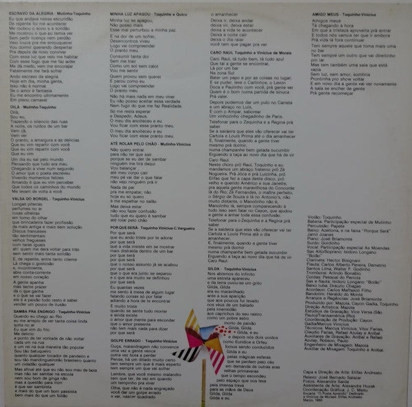 A1. Escravo Da Alegria A2. Oilá A3. Valsa Do Bordel A4. Samba Pra Endrigo A5. Minha Luz Apagou B1. Até Rolar Pelo Chão B2. Por Que Será B3. Golpe Errado B4. Caro Raul B5. Gilda B6. Amigos Meus
