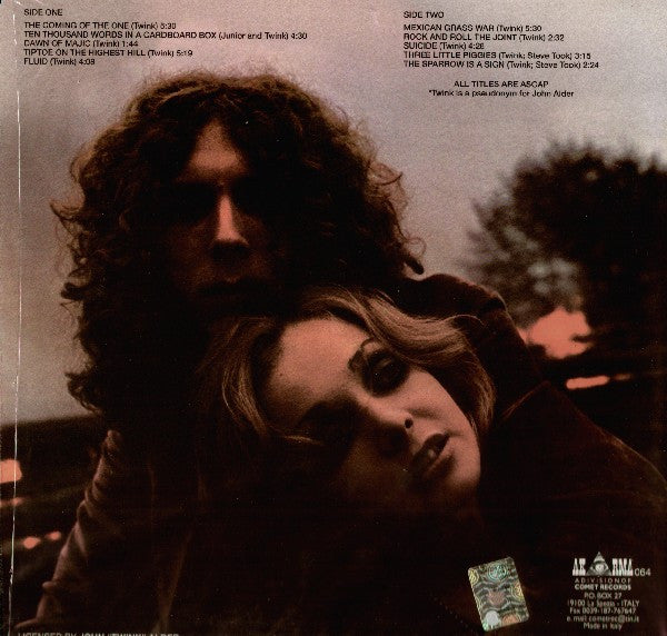 A1. The Coming Of The One A2. Ten Thousand Words In A Cardboard Box A3. Dawn Of Majic A4. Tiptoe On The Highest Hill A5. Fluid B1. Mexican Grass War B2. Rock And Roll The Joint B3. Suicide B4. Three Little Piggies B5. The Sparrow Is A Sign