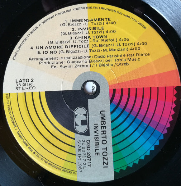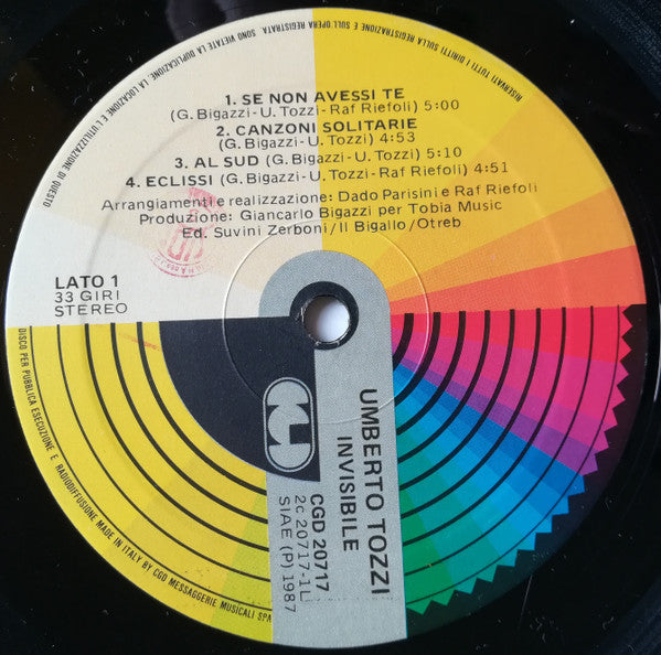 A1. Se Non Avessi Te A2. Canzoni Solitarie A3. Al Sud A4. Eclissi B1. Immensamente B2. Invisibile B3. China Town B4. Un Amore Difficile B5. Io No