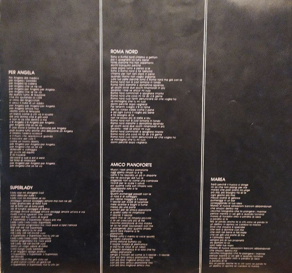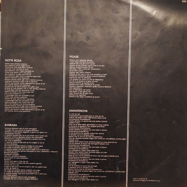A1. Notte Rosa A2. Barbara A3. Please A4. Amantenova B1. Per Angela B2. Super Lady B3. Roma Nord B4. Amico Pianoforte B5. Marea