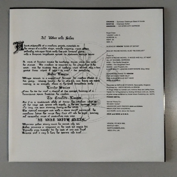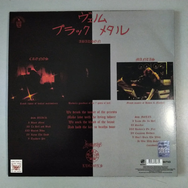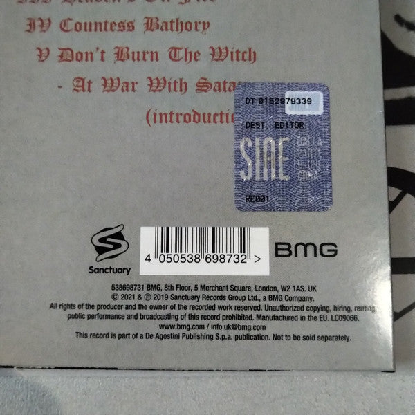 A1. Black Metal A2. To Hell And Back A3. Buried Alive A4. Raise The Dead A5. Teachers Pet B1. Leave Me In Hell B2. Sacrifice B3. Heavens On Fire B4. Countess Bathory B5. Don't Burn The Witch / At War With Satan (Introduction)
