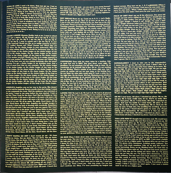 A1. Being In Love A2. Chaise Longue A3. Angelica A4. I Don't Wanna Go Out A5. Wet Dream A6. Convincing B1. Loving You B2. Ur Mum B3. Oh No B4. Piece Of Shit B5. Supermarket B6. Too Late Now