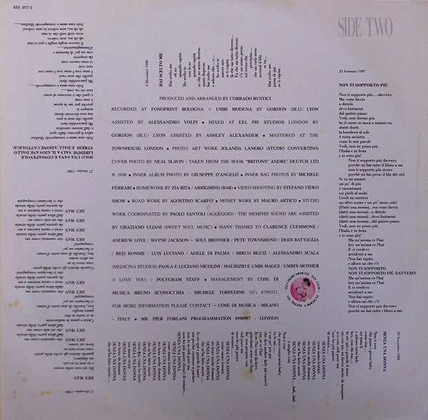 A1. Blue's Introduction A2. Con Le Mani A3. Pippo A4. Dune Mosse A5. Bambino Io, Bambino Tu (Legenda) B1. Non Ti Sopporto Più B2. Senza Una Donna B3. Hey Man B4. Solo Una Sana Consapevole Libidine Salva Il Giovane Dallo Stress E Dall'Azione Cattolica B5. Hai Scelto Me
