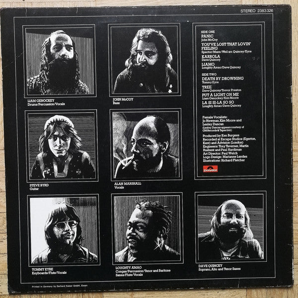 A1. Panic A2. You've Lost That Lovin' Feeling A3. Karrola A4. Liamo B1. Death By Drowning B2. Tree B3. Put A Light On Me B4. La Si Si-La So So